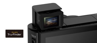 Obraz w wizjerze OLED Tru-Finder odznacza się dużym kontrastem i jest o wiele jaśniejszy niż w typowych wizjerach elektronicznych. Teraz wizjer ma jeszcze mniejsze wymiary. Pozwala podglądać na żywo wygląd przyszłego zdjęcia i sprawdzać szereg ustawień. A dla większego bezpieczeństwa i poręczności można go wsunąć do wnętrza aparatu.